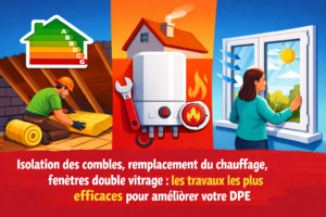 Les travaux les plus efficaces pour améliorer un DPE sont, dans l’ordre de priorité :